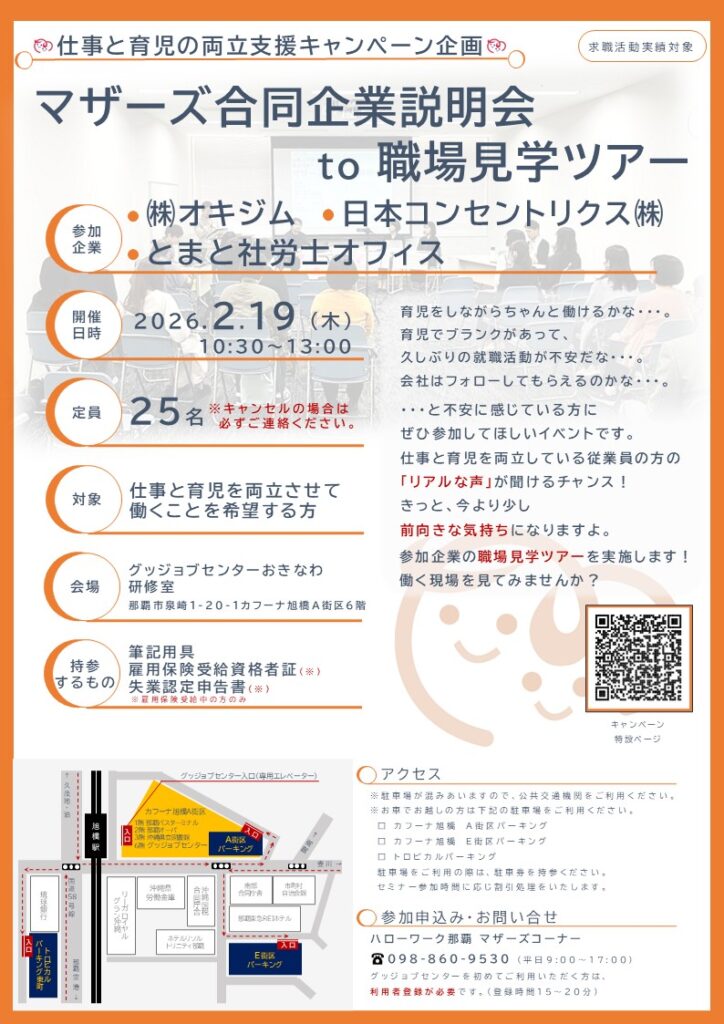 当日は、仕事と育児の両立を希望する求職者の方を対象とした説明会を予定しています。