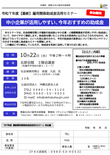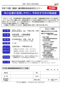 (10/22) 中小企業でも活用できる助成金セミナー(北部会館)