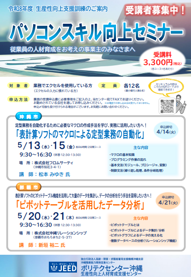 1)業務に役立つ表計算ソフトの関数活用(4/14・15)