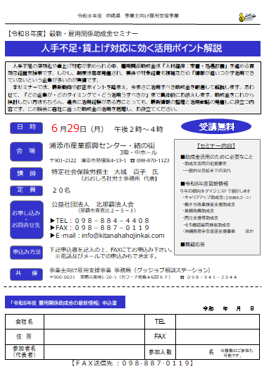(6/29) 令和8年度雇用関係助成金セミナー(浦添市)