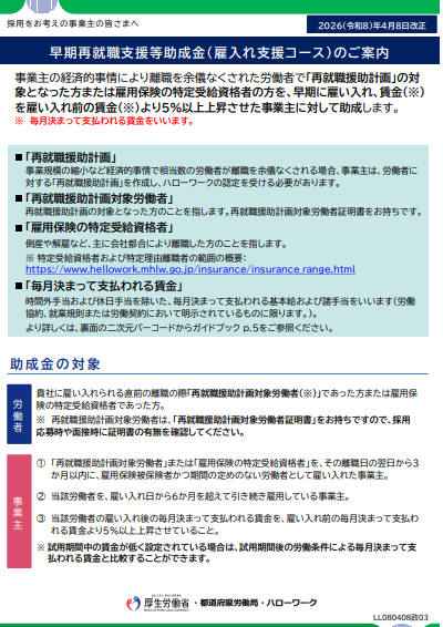 ・令和8年4月8日以降に離職した再就職援助計画等の対象者を雇い入れた場合
